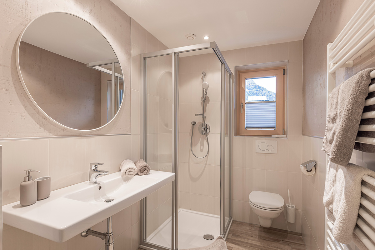 The newly renovated Apart Nederkogel for 2 to 5 people has 56 m² of space with one double and one additional double or triple room, each with cable TV and private bathroom with shower/WC and hairdryer. In addition, there is a fully equipped kitchen with a cosy sitting area, balcony with seating, safe and wifi. Separate beds possible on request.